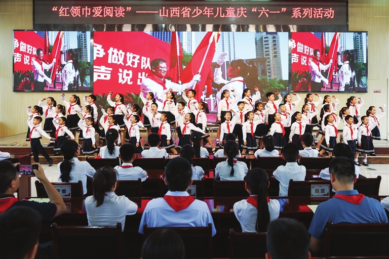 活动在庄严的少先队出旗仪式中拉开帷幕。五(4)中队的同学们表演了课本剧《三晋神髓——从民间故事里走来的山西》,将山西民间传说搬上舞台,生动的演绎赢得了阵阵掌声。中国少年儿童新闻出版总社向学校捐赠了4个“红领巾图书角”,为孩子们送上了一份充满书香的礼物。