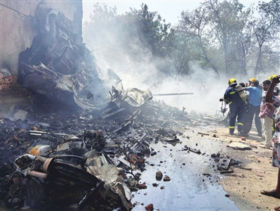 一名男性目击者告诉媒体记者,他的办公室距离坠机地点大约200米,他刚走出办公室就听到一声巨响,烟雾立即弥漫整个区域。“到现场后,我看到周围散落着飞机残骸。”