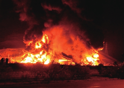 这是6月15日凌晨拍摄的伊朗首都德黑兰附近遭以色列袭击起火的储油设施。