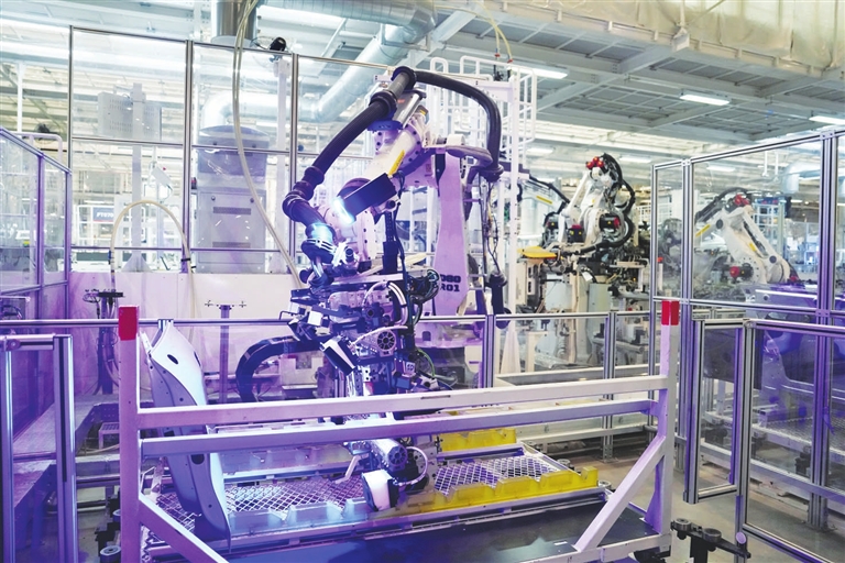 一路穿行车身车间腹地,记者感受最深的不是单一机械臂飞舞作业,而是超700个机器人有条不紊地作业,各自繁忙又浑然一体。“嗒、嗒、嗒”,现场的机械马达低鸣与气动工具嘶鸣声此起彼伏。在200多道关键工序中,自动化率达到100%。