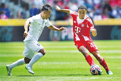 本场比赛第66分钟,周通替补上阵,他在场上跑动积极,补时阶段还主罚角球制造了进攻威胁,拜仁门将诺伊尔面对来球飞身出击,化解了险情。