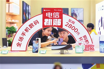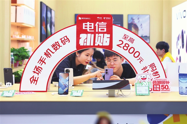 正值“618”年中促销,许多商家结合国补政策推出优惠活动吸引消费者。图为6月16日,顾客在商场选购手机。