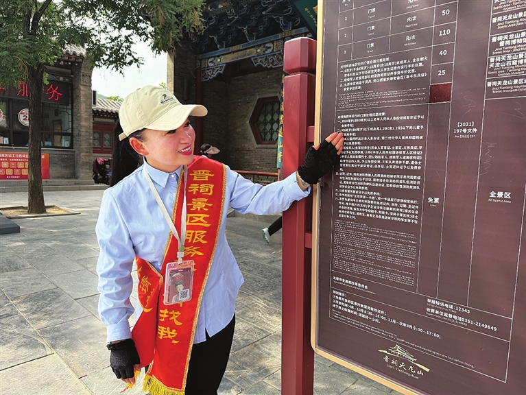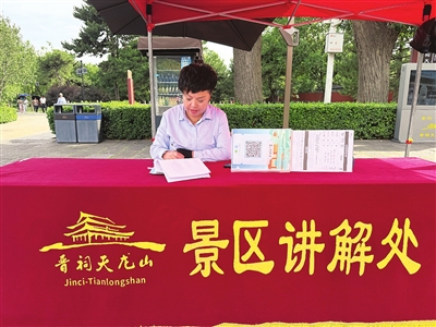 转折发生在2024年,晋祠天龙山冲刺国家5A级旅游景区的号角吹响。由晋祠镇北大寺、长巷、晋祠一社区联合创立的“晋之胜”文旅服务公司,携手国仪文化团队,将散兵游勇整编成248人的专业队伍。这支队伍女性占到九成,如今,大家平均月收入4000元,在家门口端稳了新饭碗。