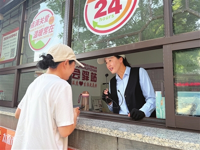 精心设计的90分钟讲解路线,串联起“三绝”(周柏、宋代彩塑、难老泉)与“三宝”(圣母殿、鱼沼飞梁、献殿),深厚的专业知识被巧妙化解为引人入胜的叙事。这份用心,更流淌在无微不至的服务细节里:看到轮椅上的老人仰视木雕吃力,讲解员会蹲下身,细致解说每一处雕刻纹路;发现小朋友疲倦,她们又变魔术般地从口袋掏出晋祠故事卡片。广东湛江游客刘卫华送来的锦旗“细述晋祠彰底蕴,贴心服务暖人心”,如今高悬在醉翁轩最耀眼处。