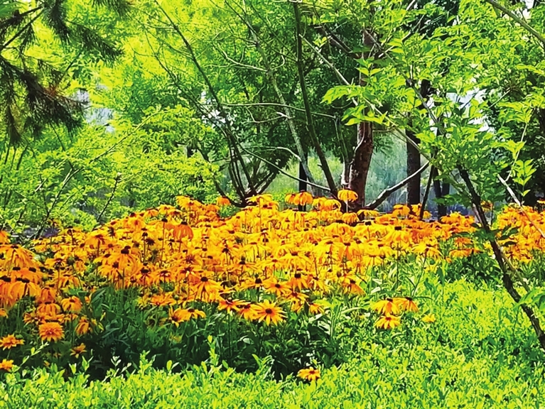 6月17日、18日,记者在几个公园看到,黑心菊花色鲜艳夺目,如同一团燃烧的火焰。花心呈黑色,如同一个深邃的黑洞,吸引着人们的目光,给人一种神秘的感觉;花瓣细长柔软,如同一段丝绸,随风飘舞,轻盈婀娜。黑心菊花期较长,夏季、秋季都能绽放出美丽的花朵,给人们带来了无尽的欢乐和喜悦。