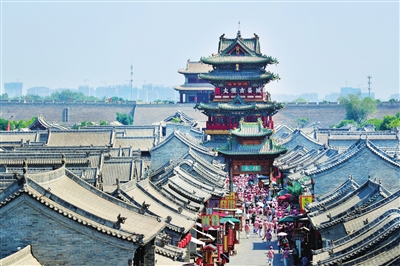 6月24日,太原古县城内,游人品美食赏非遗。 王韵菲 摄