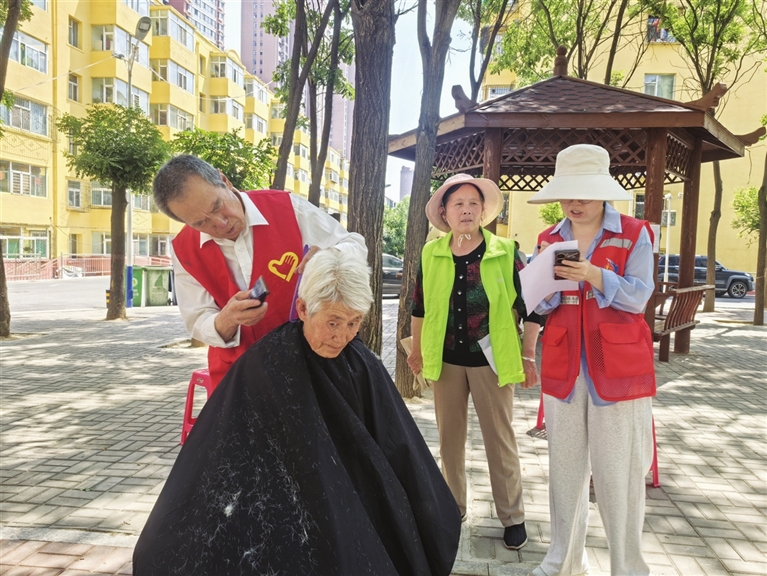 从此,他们只要有空闲,就带着工具来到小广场给大家义剪。对于腿脚不好的老人,他们主动上门。朝阳街社区的工作人员在入户时,不止一次见到老哥俩献爱心,很受感动。