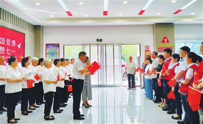 为庆祝中国共产党成立104周年,6月23日,河北里社区党委、杏花红志愿服务中心党支部和晋商银行敦化坊支行党支部共同开展主题党日活动,社区党员群众齐聚一堂,以诗歌朗诵和大合唱,向党的生日献上诚挚祝福。 周利芳 摄