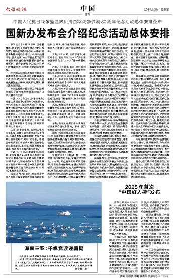 九是,围绕纪念中国人民抗日战争暨世界反法西斯战争胜利80周年,创作推出一批文艺作品和主题出版物;加强学术研究,确立一批重点课题。此外,还将发行纪念币和纪念邮票。