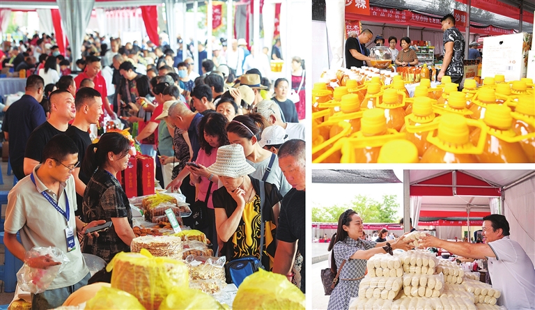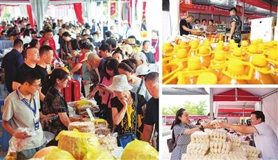 6月25日,山西(太原)特优农产品夏季产销对接活动在龙潭公园举行,来自省内11个市的300家农业企业展出酿品、饮品、果蔬、杂粮、肉制品等农产品,吸引了众多市民品尝、采购。