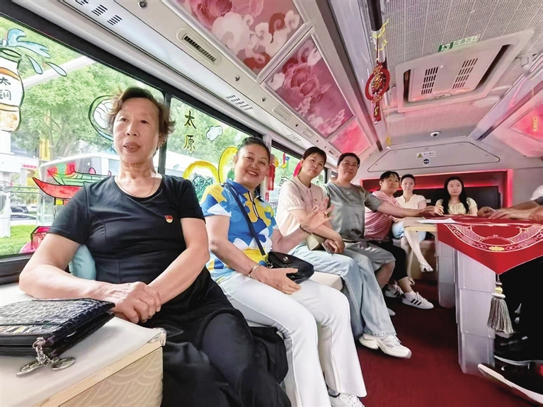 “头一次坐,车厢真漂亮!”晚上7点,大家坐上公交车,开始观光之旅。公交车从下元出发,途经气派的迎泽大街、宽敞的五一广场、繁忙的太原火车站、热闹的钟楼街等处。人们透过车窗,欣赏着城市美景。天色逐渐变暗,街头巷尾变得流光溢彩,大家纷纷称赞:“夜里的太原,比白天更有韵味。”“你们发现没,咱身边的环境越来越美。”76岁的王秀荣感慨,家乡的发展很快,街头巷尾、公园景点、小区院落,每年都有令人惊喜的新变化。很多外地来的亲朋好友都夸赞,自己听了也很自豪。