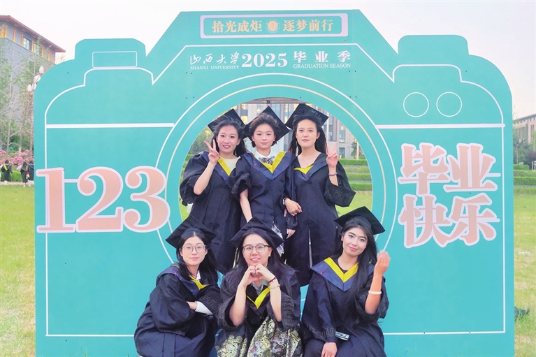 22岁的武瑞芝家住康乐苑社区,即将从山西大学电力与建筑学院毕业。她与室友们站在校园背景墙前,拍下毕业照。那一刻,每个人的心里,有对未来的憧憬,也有离别的不舍。