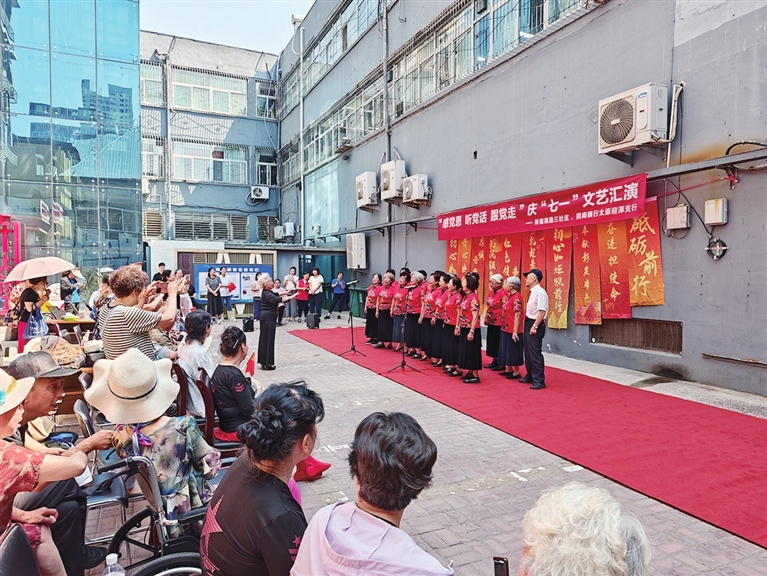 6月24日,新南三社区举办庆“七一”文艺汇演,社区志愿者、老年文艺团体精心编排的13个节目轮番上演,以歌舞献礼党的104周年华诞。 郭晓华 摄