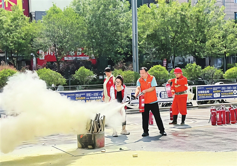 实操环节,消防安全员点燃模拟火源,手把手教每位参与者学会正确使用灭火器,并强调“站在上风口,对准火焰根部喷射”。初次体验灭火器的商场员工王女士说:“原来灭火器用起来不难,关键是要冷静。”