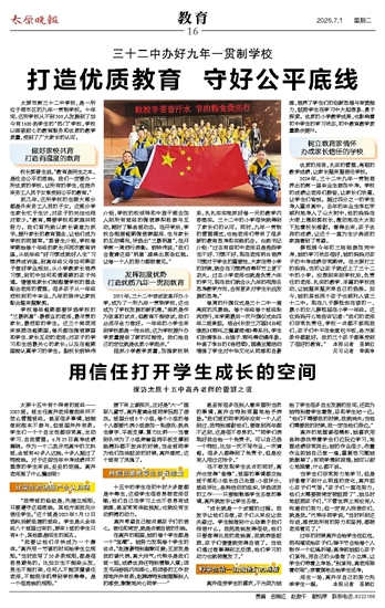 2024年,三十二中九年一贯制培养出的第一届毕业生参加中考。学校的成绩让老师们振奋,让家长们欣喜,让学生们愉悦。超过四分之一的学生考入重点高中。去年的毕业生李红宇顺利地考入了山大附中,他的妈妈在大街上遇到郭校长,激动地在大太阳下拉着校长感谢。看得出来,孩子优异的成绩,让这个一直为生计奔波的家庭看到了希望。