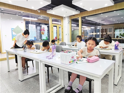 玉园南社区面向辖区6岁至12岁的孩子,免费提供托管服务。今年,社区联合培训机构,从7月1日至8月18日,将每天开设美术、书法、口才等趣味课堂。