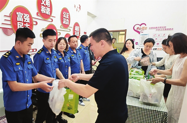 活动现场,北营街道和许坦社区相关负责人向高温下坚守岗位的劳动者致以诚挚问候,并叮嘱他们注意防暑降温,确保健康安全。社区志愿者将装有茉莉花茶、八宝菊花茶、金银花凉茶、白冰糖的礼包及防暑物资一一送到劳动者手中,了解他们工作与生活需求。一位外卖小哥感动地说:“街道和社区的关心让我们在高温天里感受到了清凉,工作起来更有干劲了。”活动还收到来自辖区爱心商家赞助的湿巾、洗洁精、洗发水、护理液等生活礼包。从志愿者手中接过慰问品,环卫工王女士开心地说:“东西很实用,谢谢大家的关心!”