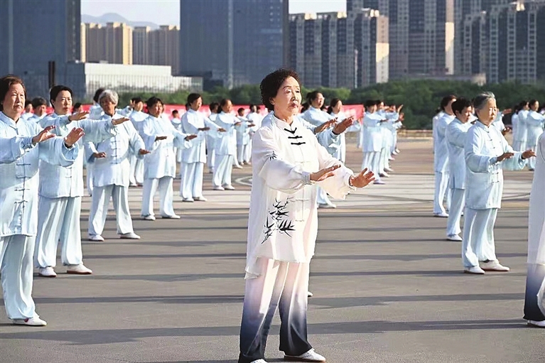 6月29日,清徐县杨氏太极拳协会在县人民广场举办展演活动,来自全县24个太极拳辅导站的500余名爱好者齐聚一堂,以刚柔相济的表演展现太极魅力,弘扬中华传统武术文化。 孙佳敏 刘凯 摄影报道