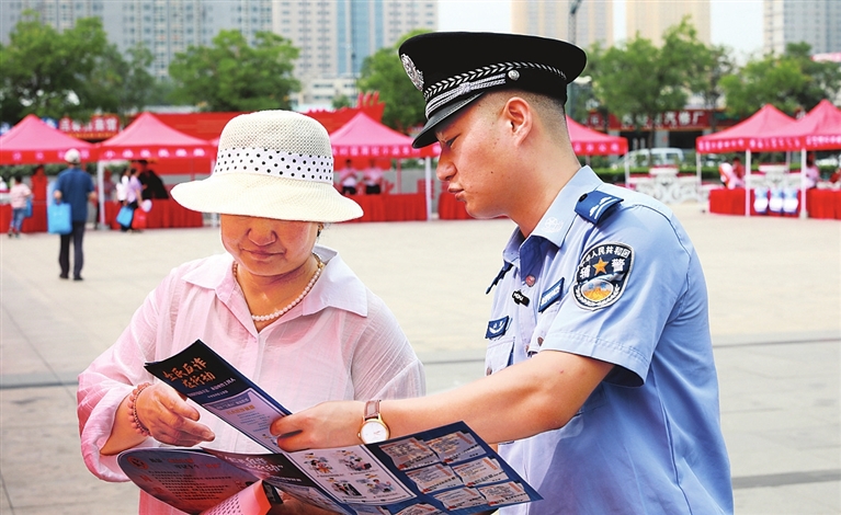 活动现场,小店区多家单位设置了反诈展台,宣传人员采取有奖问答、游戏互动、视频播放等方式,向群众解读《中华人民共和国反电信网络诈骗法》。公安小店分局民警以案释法,剖析了“刷单兼职”“虚假网络游戏交易”“冒充公检法”“虚假理财投资”等诈骗套路,动员大家关闭境外来电功能。