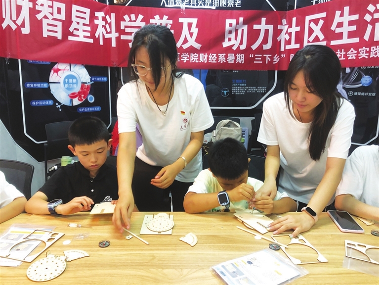 7月2日,万科城社区与太原学院共同推出暑期青少年科普活动,大学生志愿者通过理论讲解与实物展示,向参加活动的青少年揭秘古代计时仪器日晷的计时原理,培养孩子们对科学的热爱。 周利芳 摄