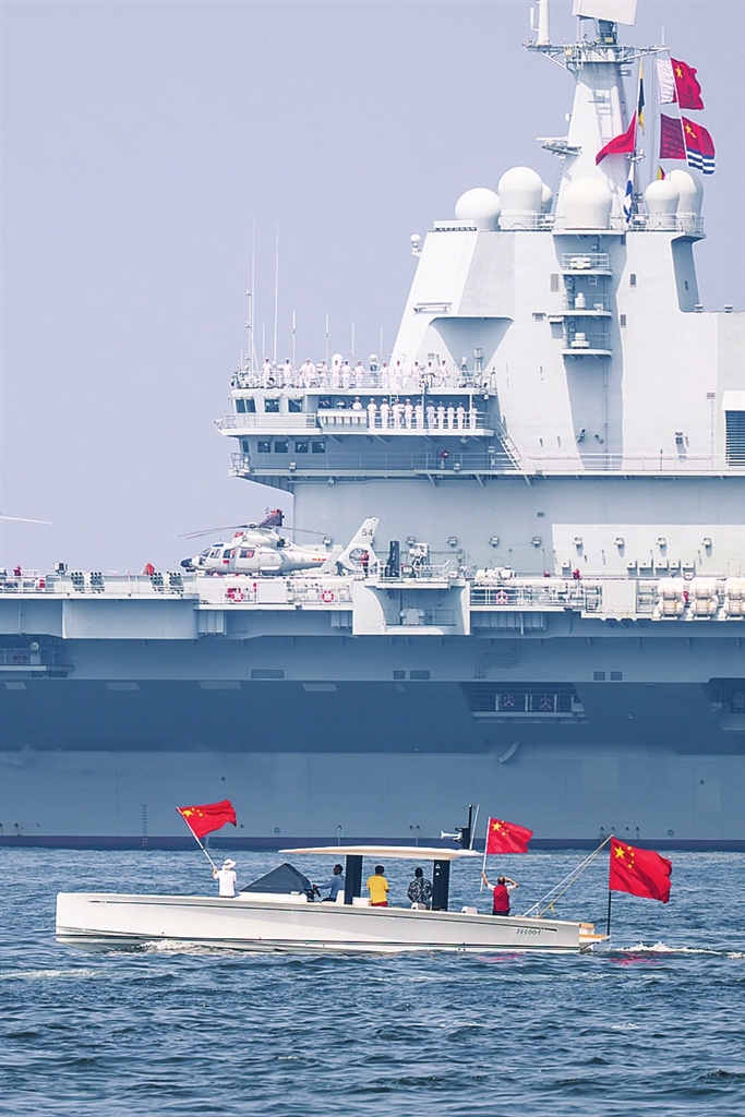 仪式结束后,湛江舰、运城舰响起清脆的海军笛,官兵们在舷边分区列队,向码头上的人群挥手致意,两艘舰艇驶离昂船洲军营码头,前往预定海域与山东舰、延安舰会合。香港特区直升机、船队一路引航伴航,护送编队驶出区界。