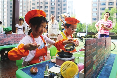 7月12日,杏花岭区巨轮街道中车社区开展“小小厨神”比赛。现场,孩子们亲手制作西红柿炒鸡蛋、炒土豆丝,炒茴子白等。通过比赛,增长孩子们的知识,增强孩子们的劳动技能。 张昊宇 摄