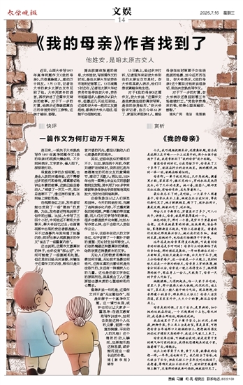 对于《我的母亲》这篇作文,安大爷说:“这篇作文是我家庭生活的真实写照,是我的亲身经历。”安大爷告诉记者,自己今年66岁了,家里兄弟姐妹8人,曾经母亲在世时照顾子女生活起居的场景,如今还历历在目。安大爷表示,《我的母亲》这个题目对他来说很亲切,因此决定挑战写作文。