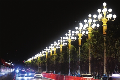 7月16日,迎泽大街太原理工大学路段北侧,装饰一新的中华灯亮起。该路灯延续了去年迎泽大街维修改造工程中经典的十一火棉桃造型灯,既美观又实用。