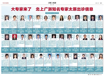 出诊时间:府城院区:7月22日下午 汾东院区:7月23日上午