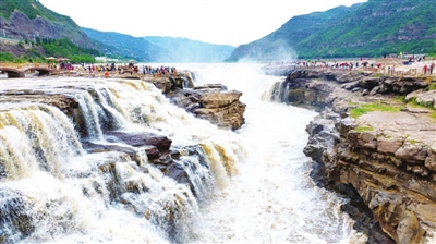走出观瀑洞,回望来时的小桥,只见两旁的红旗在风中猎猎,旗面红得发亮,桥下的河滩上,清澈的河水在涓涓流过。耳畔响着《保卫黄河》的钢琴曲和激越的唢呐曲,遥想黄河船夫们与性情不定的黄河斗争,想起抗日军民们与敌人的殊死战斗,竟激动了起来。中华民族就是在与自然的斗争中,坚强地生活;就是在与外来侵略者的斗争中,战胜了邪恶,取得了民族独立;就是在不断变革的世界环境中,以自强不息的力量获得了让世界尊重的大国底气!