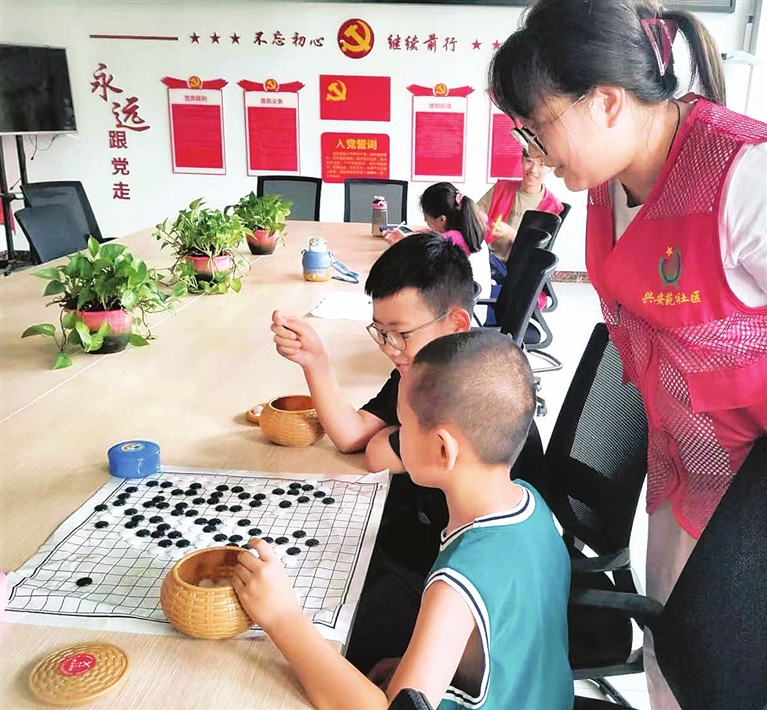 “黑棋要围过来啦,快想想怎么突围。”志愿者们在一旁循循善诱,鼓励他们勇敢尝试,大胆落子。对弈过程中,孩子们不仅学会了如何运用战术策略,还深刻体会到了围棋的魅力所在。此次暑期科普班围棋活动,寓教于乐,孩子们在学习本领的同时锻炼了逻辑思维能力、专注力和耐心。
