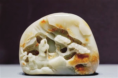 玉山子借天然玉色雕琢,将中国传统山水画的意境融入玉雕创作,堪称“立体画卷”。玉匠们巧妙利用天然玉料的色泽与纹理,通过深浅浮雕、镂空等技法,在方寸之间营造出层峦叠嶂、亭台隐现的山水意境。