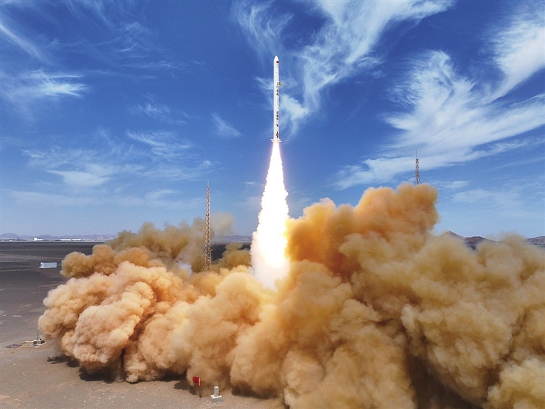 7月29日12时11分,双曲线一号遥十运载火箭在我国酒泉卫星发射中心发射升空,将搭载的恩施硒都山泉号卫星顺利送入预定轨道,飞行试验任务获得圆满成功。 新华社 发
