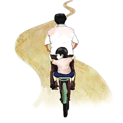 小学毕业,父亲终于答应教我骑车。空旷的打谷场上,我从父亲手中接过车把,使劲推着这个庞然大物。车轮开始缓慢转动,车把灵活得像一条蛇,推着它,我甚至无法走出一条像样的直线。父亲见状,上前握住我的手,车子瞬间就听话了。父亲把我扶上自行车,两只手像钳子一样保持着车子的稳定,看我骑得熟练了些,就偷偷放手,然后在我即将摔倒的时候,一个箭步冲上来接住我。我的胆子一点点变大,因为知道身后有一双有力的手在保护着我。直到有一天,在我练习骑行时,父亲突然伸开双臂出现在我面前,我才惊喜地发现,我已经学会了。在那个散发着稻草香味的夏天,我像一只被放飞的小鹰,快乐翱翔。在风中,我听到身后的父亲说:“这辆车,以后归你了。”