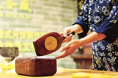 “香气是检验郭杜林月饼好坏的标准。”赵光晋轻嗅着刚出炉的月饼说,刚出炉的月饼皮硬馅软,需在粗陶缸中“窖圈熟藏”。遵循古法,每隔约半月翻缸一次,上下调换,共历时约一月。在无烟气、无蒸气、阴凉干燥的环境中,郭杜林月饼完成最后的蜕变,达到皮绵、馅酥、香酥交融的极致口感。