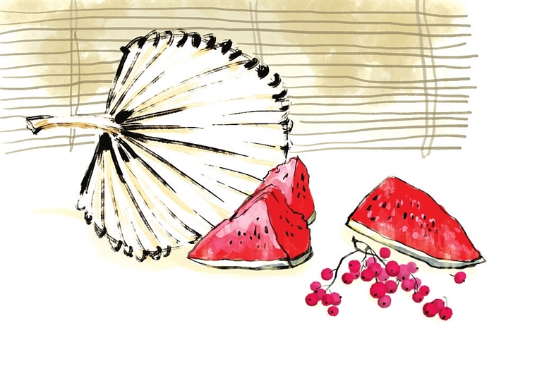 古代人们为保持井水的源源不断和干净清澈,会甃墙以蓄。“甃”不是躲避,而是蓄养之意,是一种可持续。我想,暑热就像一口井,我们也需要像对待野马一样,心存热爱,缓以时日来驯养,也就是要仔仔细细地甃一甃这汗津津、黏腻腻的湿热。躲避不是办法,面对才是良策。唐朝诗人权德舆说:“三伏鼓洪炉,支离一病夫。”人在伏热面前,宛如一介病夫。冲澡是个办法,早冲利净晚冲凉,换得一天清爽。还有什么具体的想法甃法呢?那就是盼雨来,往日里听到雷声滚滚便抱头鼠窜,大暑节气里雨来则心想“老天总算是开眼了”,宁愿走在雨中,雨不停就一直不停地走。
