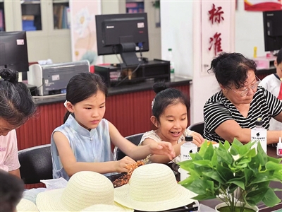 为丰富社区文化生活,搭建老人与孩子之间的互动桥梁,7月30日,铁匠巷社区组织开展干花草帽制作活动,邀请辖区的老人和孩子们共同参与,不仅让参与者体验到手工制作的乐趣,更通过代际互动传递了社区温暖,在创作中感受温情与乐趣。 郭晓华 摄