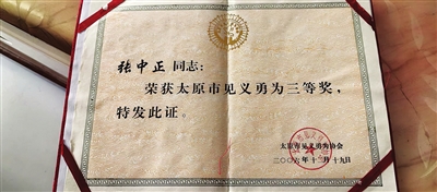 记者了解到,张中正的见义勇为并非偶然,早在19年前,他就因见义勇为而受到过表彰。
