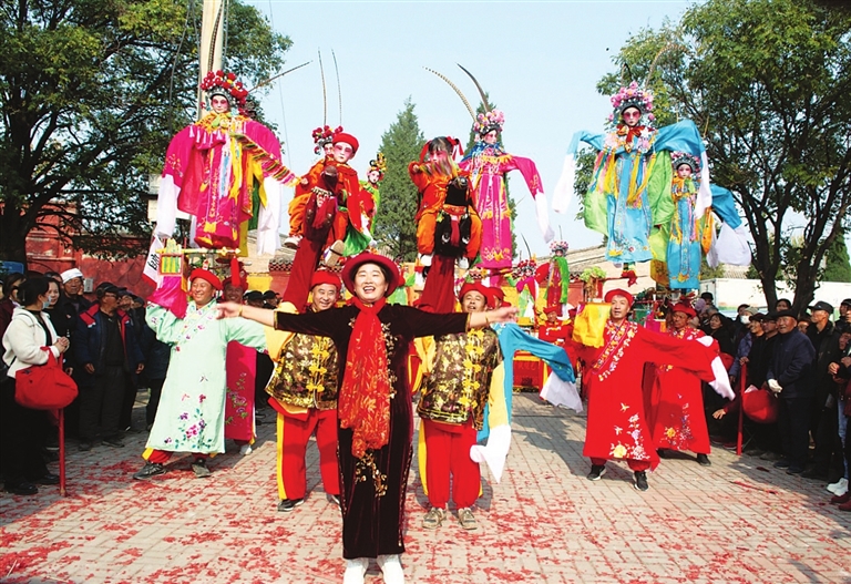 一代代传承中,年轻人对“舞动”的热爱催生出新变:从一人背一孩,到背两三个孩童的表演形式,让静态的仪式有了戏剧的灵动感。“一根棍子就是一出戏,你想想,上下人物凑成一出《西厢记》,那才叫绝。”