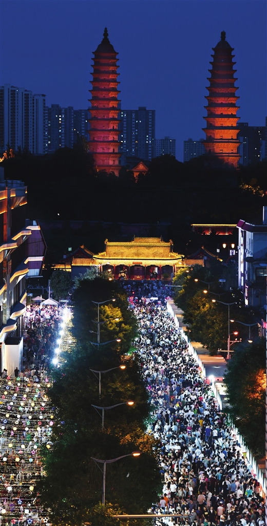 8月10日,夜幕降临,双塔公园前的夜市熙熙攘攘。立秋之后,太原气候更加宜人,街头巷尾的烟火气愈发浓厚。