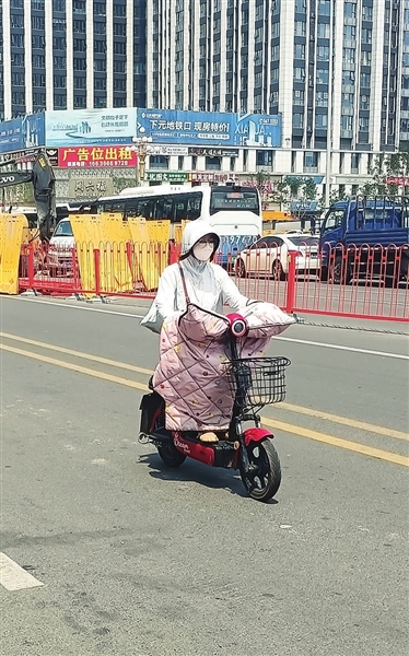 今年夏天,记者在全市各处都看到,许多女性已经不再满足于传统的遮阳伞、遮阳帽、防晒衣、墨镜等,而是“齐刷刷”地戴上了略显夸张的防晒面罩。有的如同加大加强版口罩,紧贴面部,把除了眼睛外的地方全部遮住。有的人在此基础上,往上有帽子,往下还有轻薄布料护住脖颈,有人还要配上一副墨镜,整个面部遮得“严丝合缝”,一点看不到本来面目。