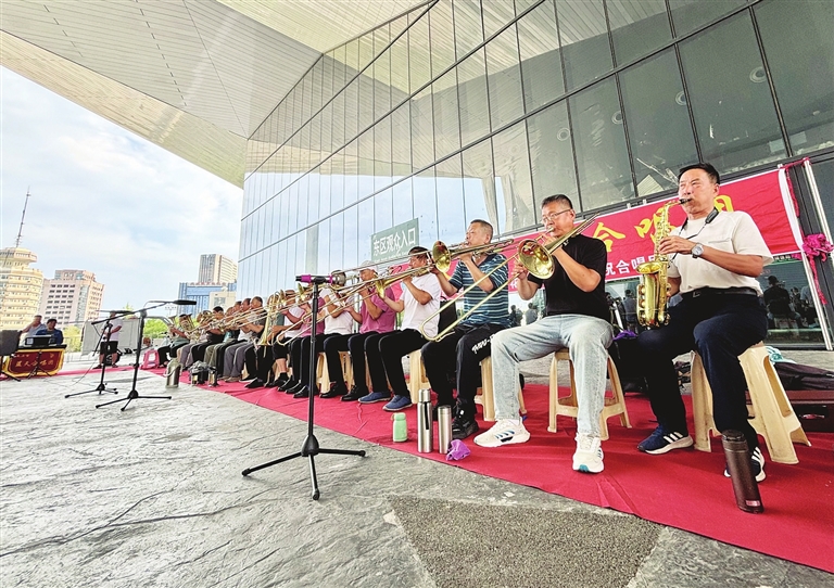 8月12日,太原市滨河体育中心,音乐爱好者们自发聚集在一起,悠扬的乐声传递着对生活的热情和对音乐的执着。 邓寅明 摄