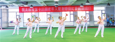 “健身球操兼具娱乐性、健身性和社交性,是深受老年人喜爱的运动形式。”据太原市老年体协赵爱玲老师介绍,健身球操已在连续3届市运会上成为老年组比赛项目,累计带动5000余名老年人参与其中。