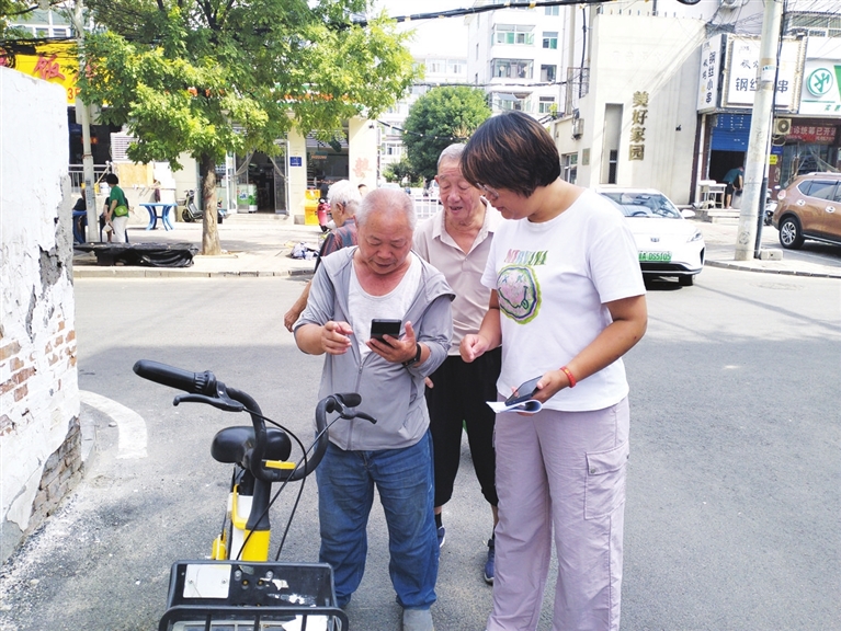 8月14日,机床西社区网格员为辖区十余名老年人开展共享单车使用教学,手把手破解老人“扫码难”“还车急”等困扰,切实缓解了老年群体短途出行难题,让科技便利“银发”生活。 韩睿 摄