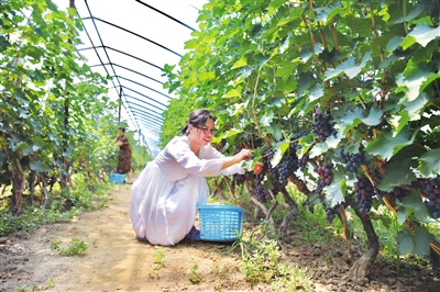 8月19日,刘家堡乡王吴村特色品牌早黑宝葡萄迎来成熟期,吸引市民前来采摘。近年来,该村不断调整产业结构,发展特色种植,农业规模化经营水平不断提高,助力乡村振兴。 王韵菲 摄