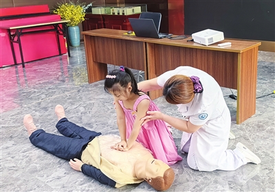 8月20日,绿地城社区开展急救小课堂,中化二建集团医院的专业医护人员,为孩子们讲解了心肺复苏(CPR)和自动体外除颤器(AED)等急救知识,进一步提升孩子们的应急能力,以及安全意识和应对突发事件的能力,让安全理念深入人心,共筑生命安全防线。 李晓琳 摄