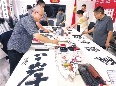 活动伊始,古交市书画协会老师为现场职工和居民讲解书画知识,带领大家领略中国书画艺术的博大精深与独特魅力。随后的创作环节中,书画家们铺纸研墨、即兴挥毫,创作出一幅幅风格多样、气韵生动的作品,引得围观职工和居民连连称赞。