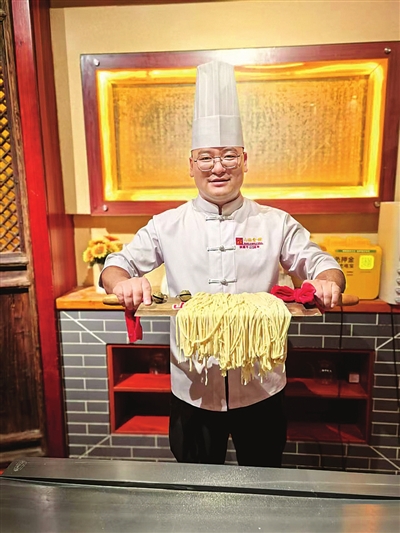 “看十年,做十年,教十年”,这是山西面食匠人的成长经历。李超说,刀拨面最快时,刀碰面板的声响能连成一片惊雷,面条出刀如银鱼贯入沸水,曾有高手一分钟拨出199刀、796根面,重达8.8公斤——这哪里是做面,分明是面案上奏起的交响乐。
