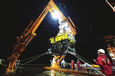“海琴”号由上海交通大学水下工程研究所自主研制,是为“中山大学”号海洋综合科考实习船量身定制的新型高效深海电动ROV系统,搭载了高清摄像机、多功能机械手、探测传感器等科考设备,具备自动定向、悬停定位、自动巡线等智能作业能力。