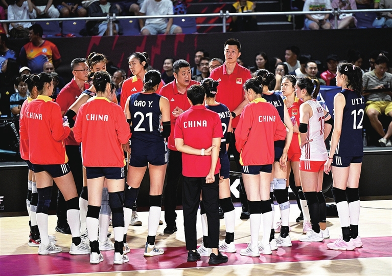 8月25日,在泰国清迈举行的2025年世界女排锦标赛F组比赛中,中国队3比1战胜哥伦比亚队。 新华社 发